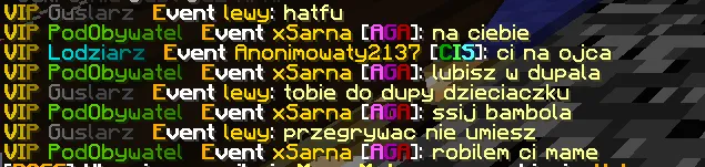 Uprzejmie donoszę iż około godziny 12.30  25 czerwca na chacie podczas jednego z eventów doszło do incydentu jakim była wulgarna kłótnia pomiędzy trzema zgłaszanymi przeze mnie graczami. Uprzejmie proszę o wyciągnięcie należytych konsekwencji w kierunku oskarżonych.